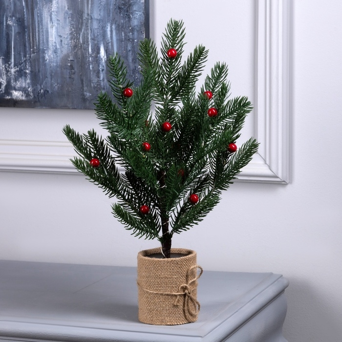 Светодиодный куст «Ель малая» 35 см, 30 LED, батарейки AAx3 (нет в комплекте), свечение тёплое белое