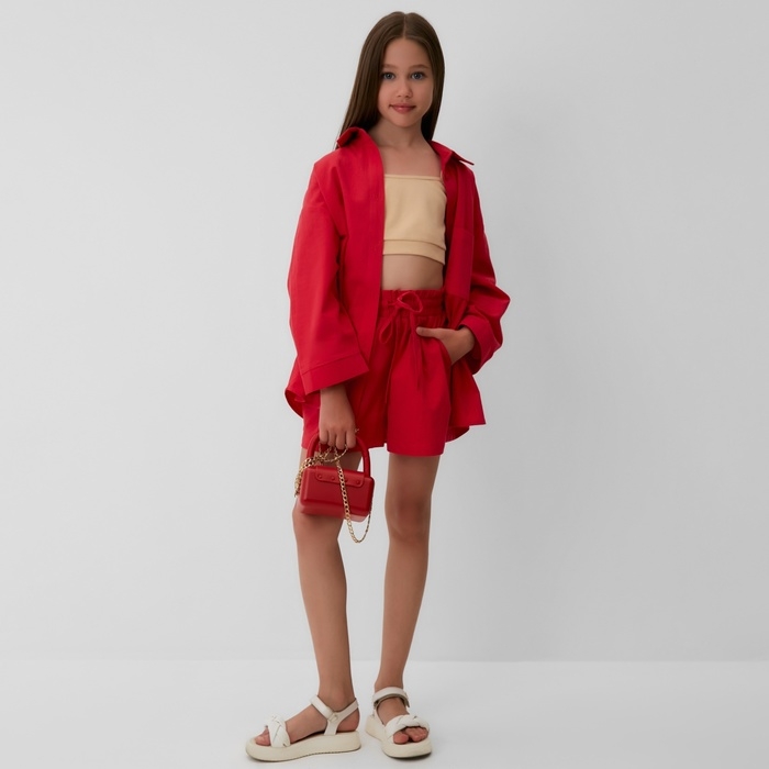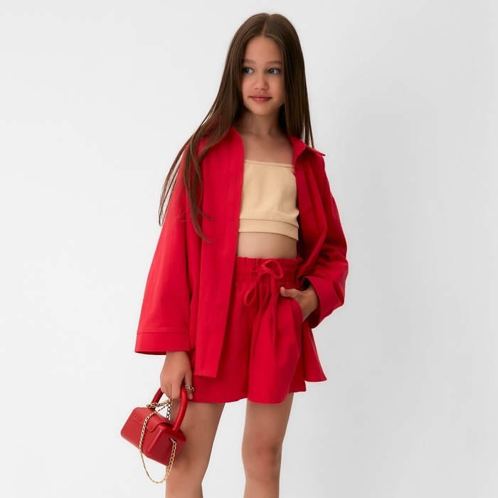 Костюм для девочки (рубашка и шорты) MINAKU, цвет красный, рост 158-164 см