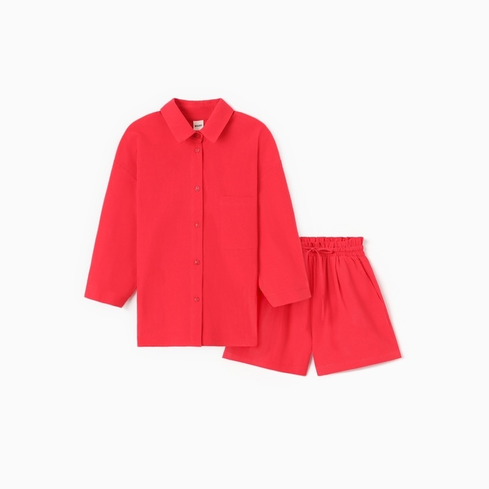 Костюм для девочки (рубашка и шорты) MINAKU, цвет красный, рост 146-152 см