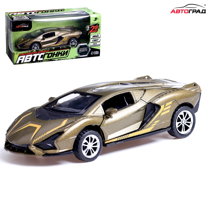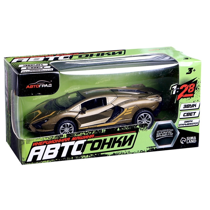 Машина металлическая «Купе», инерционная, 1:28, световые и звуковые эффекты, открываются двери, цвет зелёный