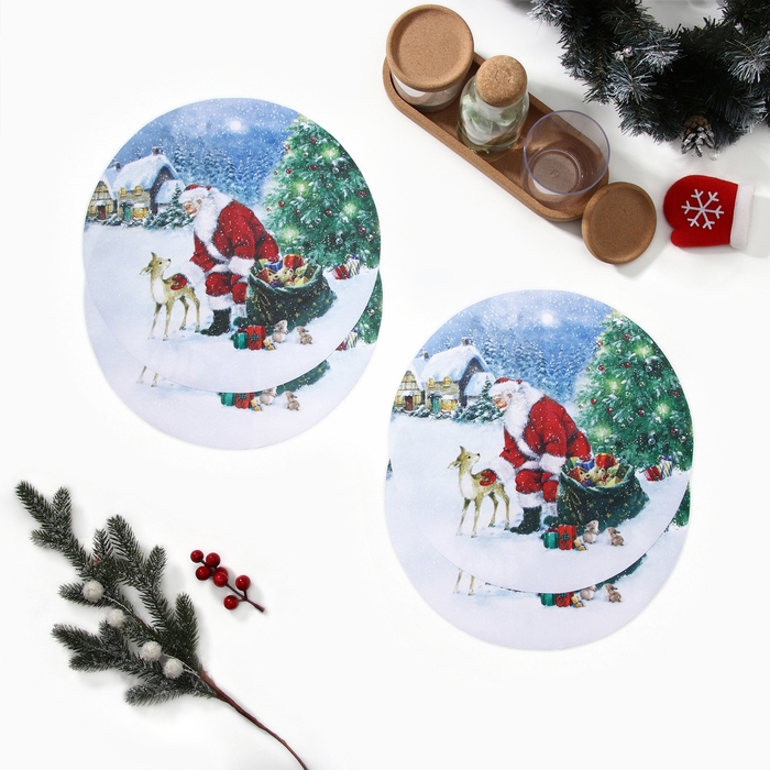 Набор салфеток на стол "Рождественский вечер" 30х30см-4шт., 100% п/э, оксфорд 420 г/м2
