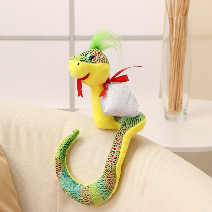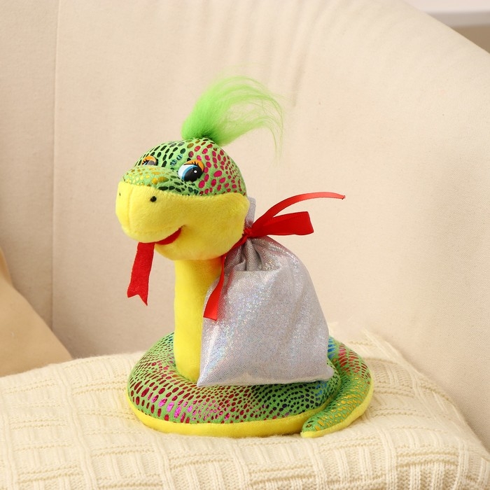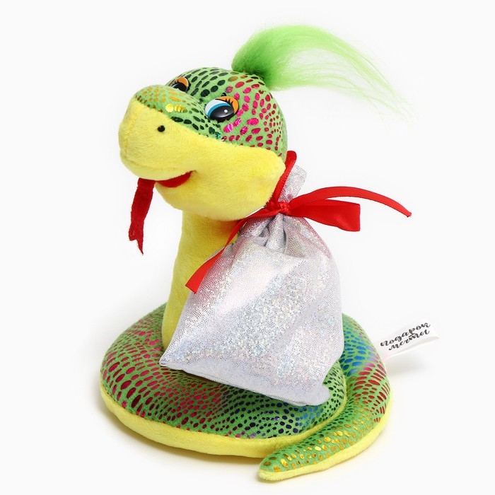 Мягкая игрушка «Змея», с подарочным мешком, 15 см, цвет зелёный