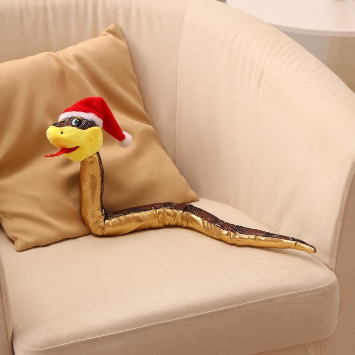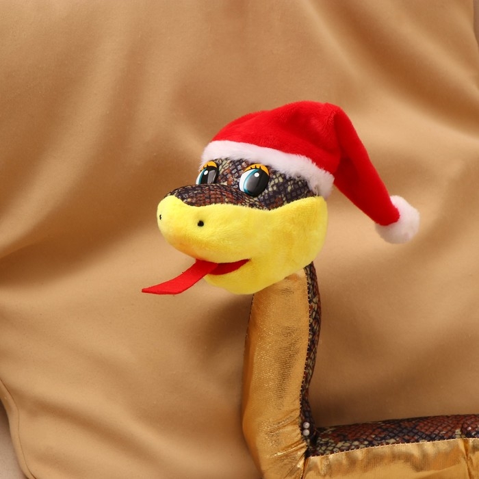 Мягкая игрушка «Змея», в новогоднем колпаке, 71 см, цвет золотой