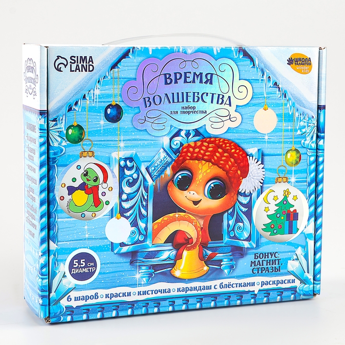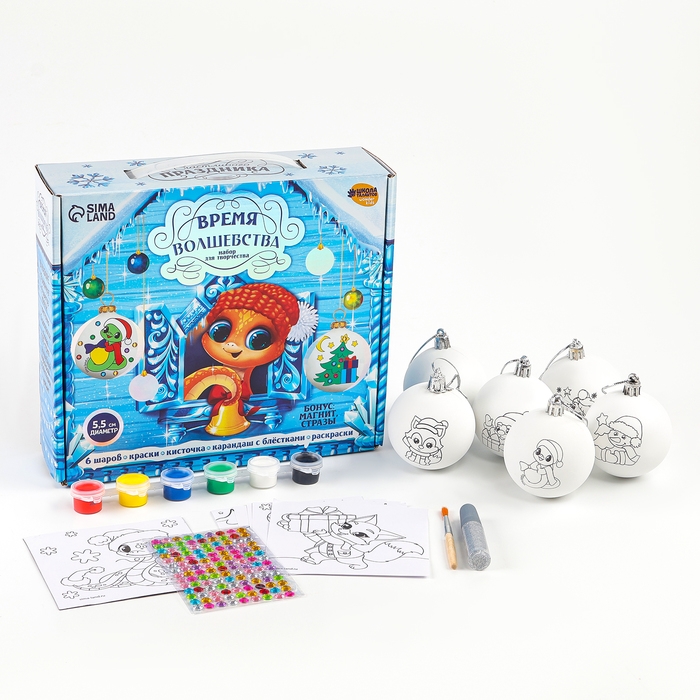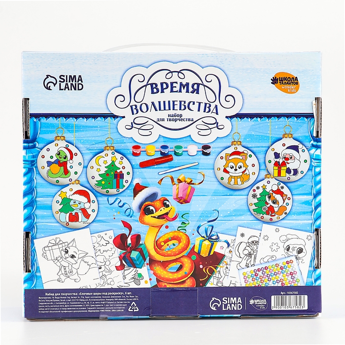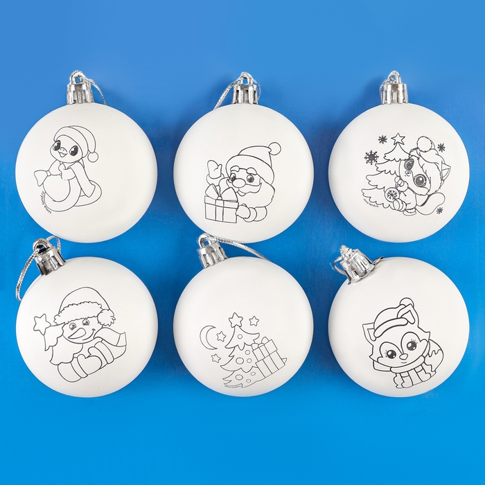Ёлочные шары под раскраску на новый год «Новогодний сюрприз. Змея», d = 5 ,5 см, 6 шт, новогодний набор для творчества