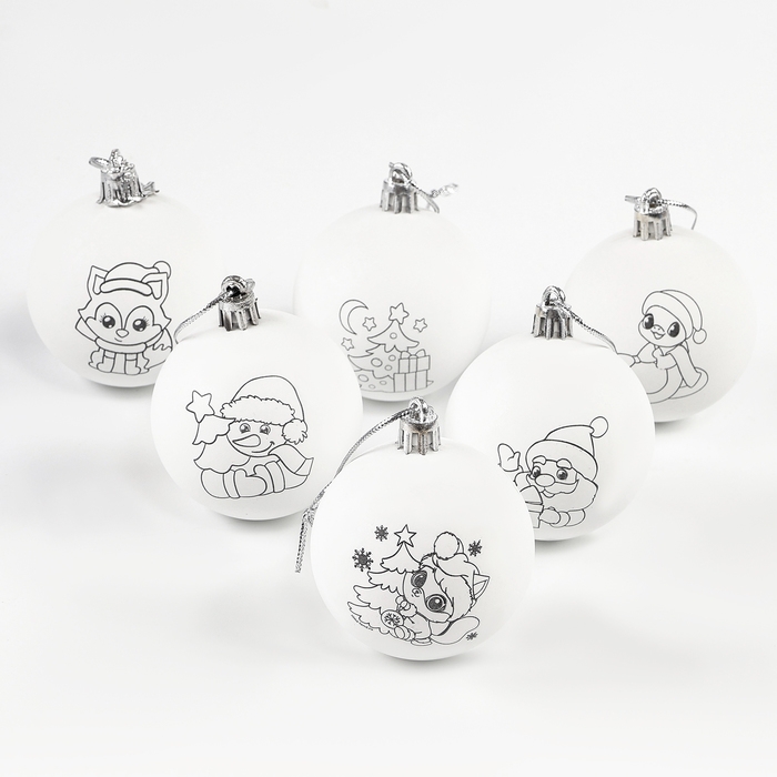 В наборе шары с нанесённым рисунком. Вам остаётся лишь проявить фантазию и раскрасить их на свой вкус. Набор шаров также станет прекрасным подарком друзьям и близким.