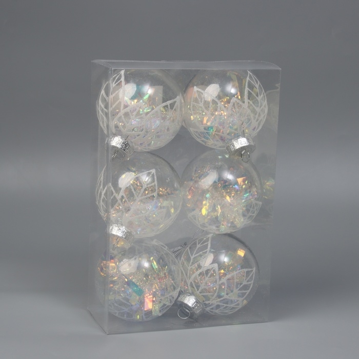 Набор шаров пластик d-8 см, 6 шт "Прозрачный лист"