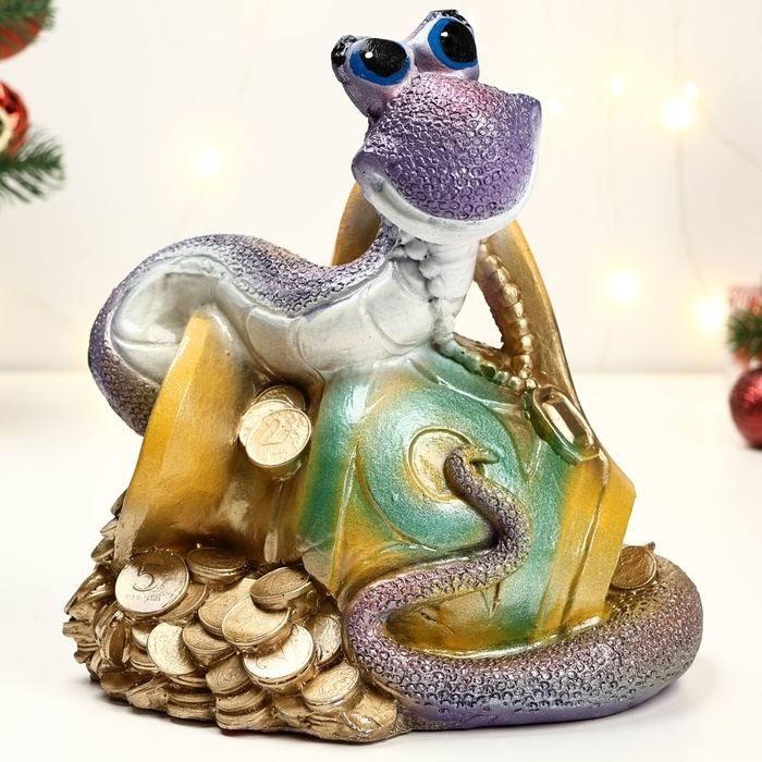 Копилка "Змея на кувшине цветная" 23х25х18см