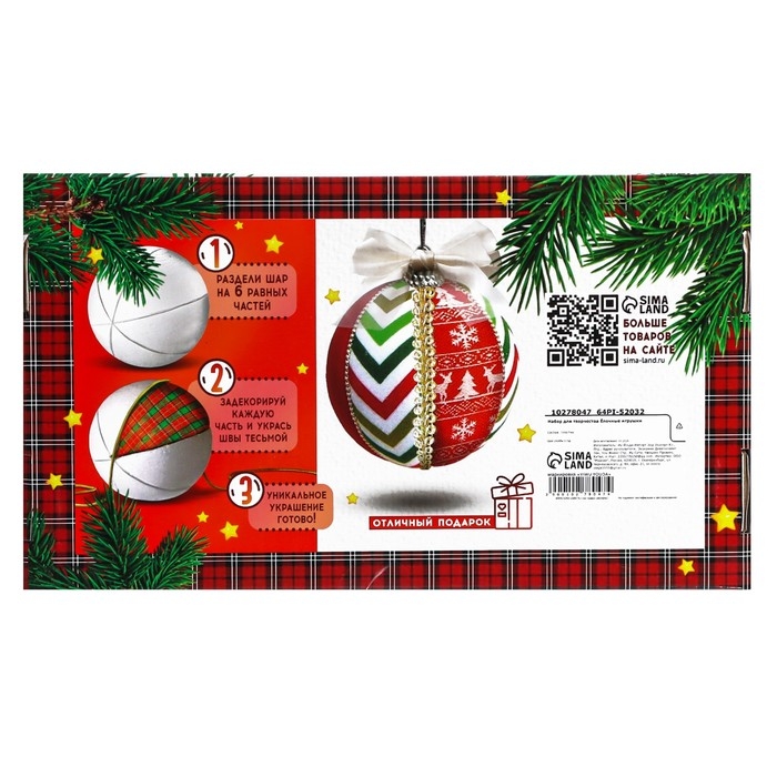 Набор для творчества «Ёлочные игрушки», лоскутки, 6 шаров