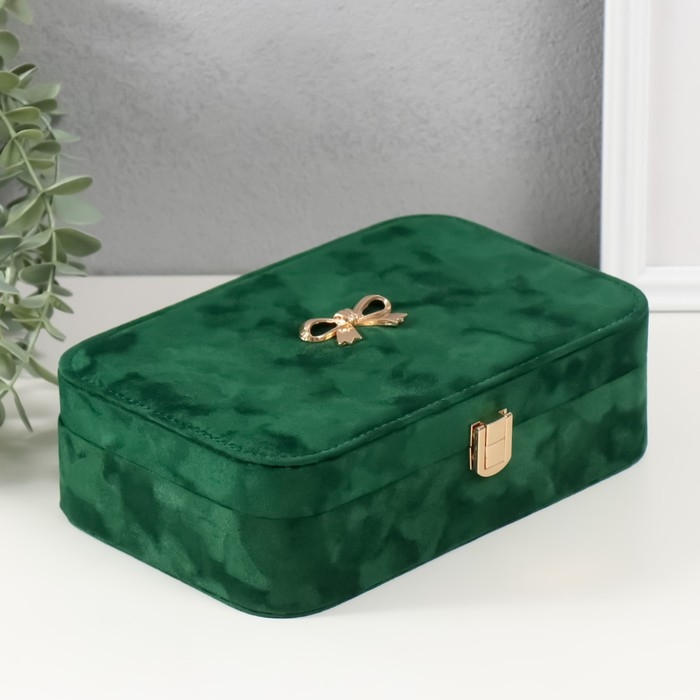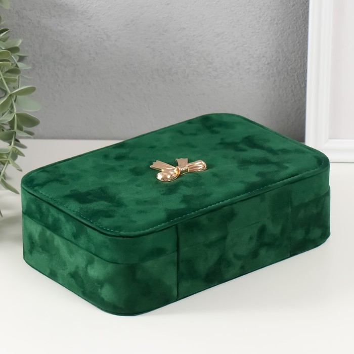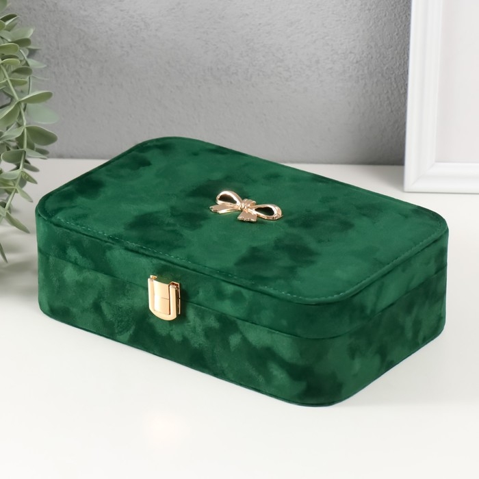 Шкатулка текстиль для украшений "Бант" изумрудный 22х14,5х7 см