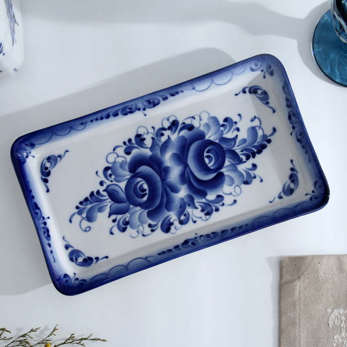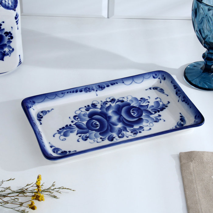 Поднос «Полянка», 14,2×25×2 см, гжель