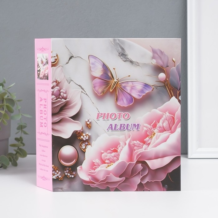 Фотоальбом на 80 фото 10х15 см "Бабочка в цветах 3D" в коробке МИКС 5,3х19х23 см