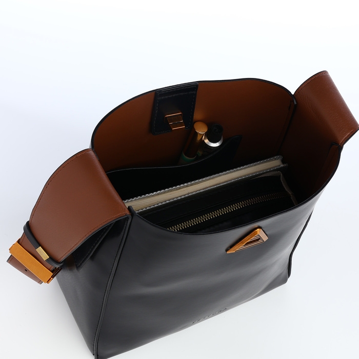 - Элегантный дизайн: классический чёрный цвет и бронзовая фурнитура придают сумке утончённый вид, который идеально сочетается с любым гардеробом.