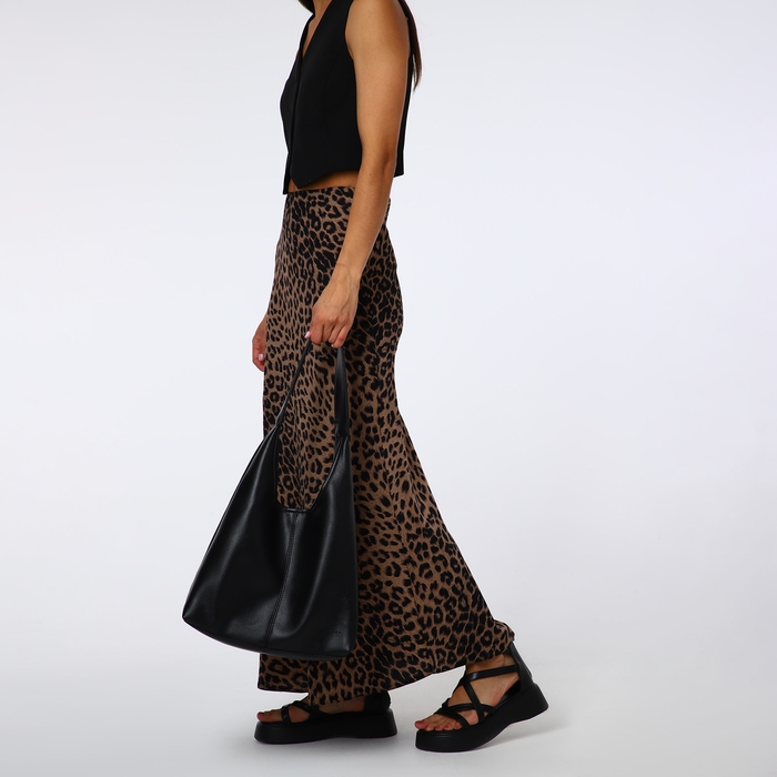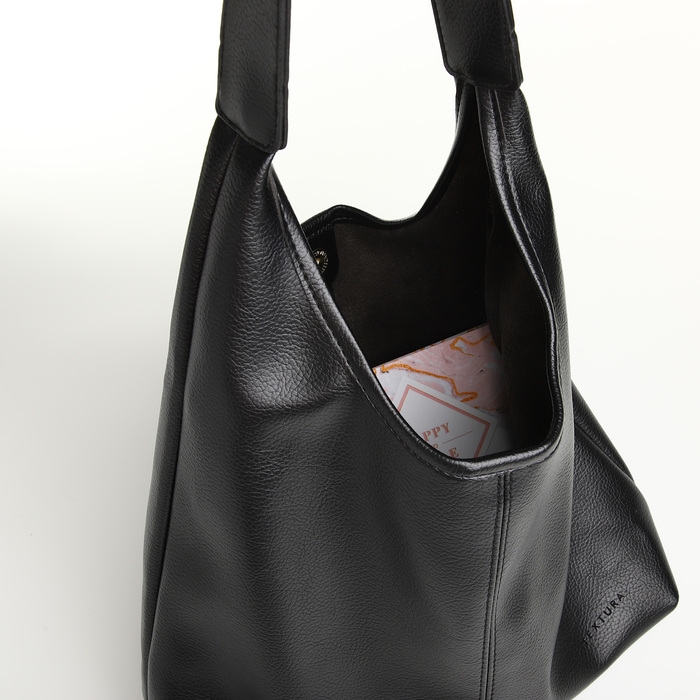 - Универсальность: чёрный цвет подходит к любому наряду, будь то деловой костюм или повседневный образ, а возможность носить на плече или в руке делает сумку максимально удобной.