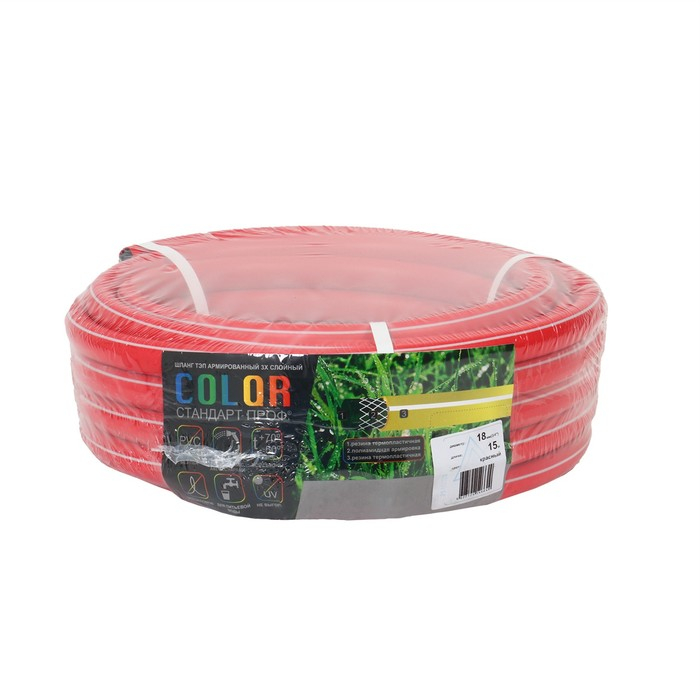Шланг поливочный морозостойкий, ТЭП, 18 мм (3/4"), 15 м, армированный, COLOR, красный