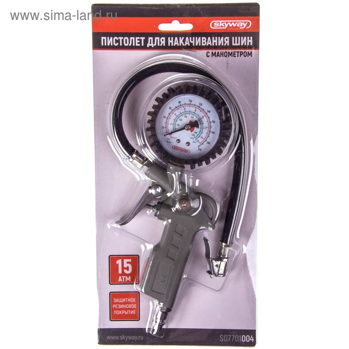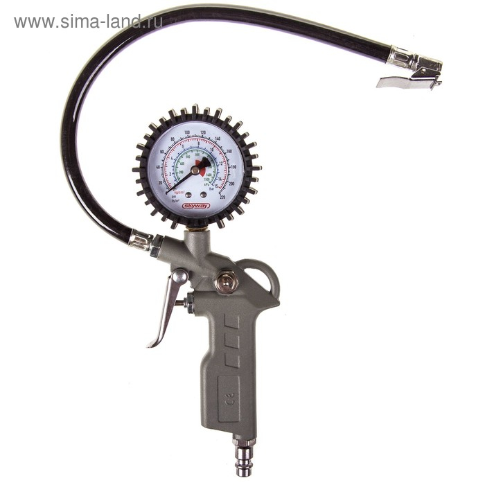 Пистолет для накачивания шин Skyway, с манометром, 14,97 АТМ, быстросъемное соединение, S07701004