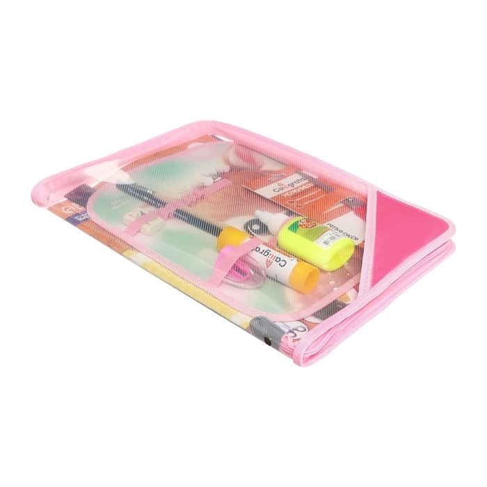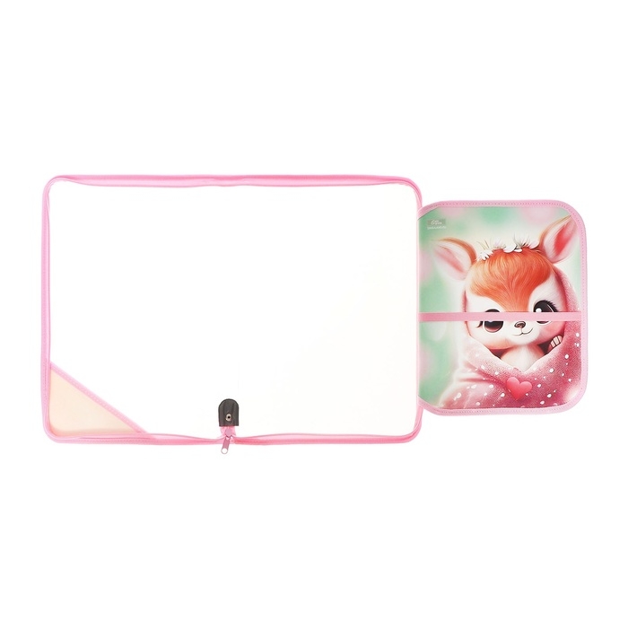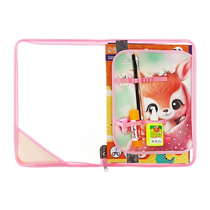 Папка для труда А4, молния вокруг, откидная планка, пластиковая, ПТР-1, с наполнением 10 предметов, для девочки, Calligrata "Олененок"