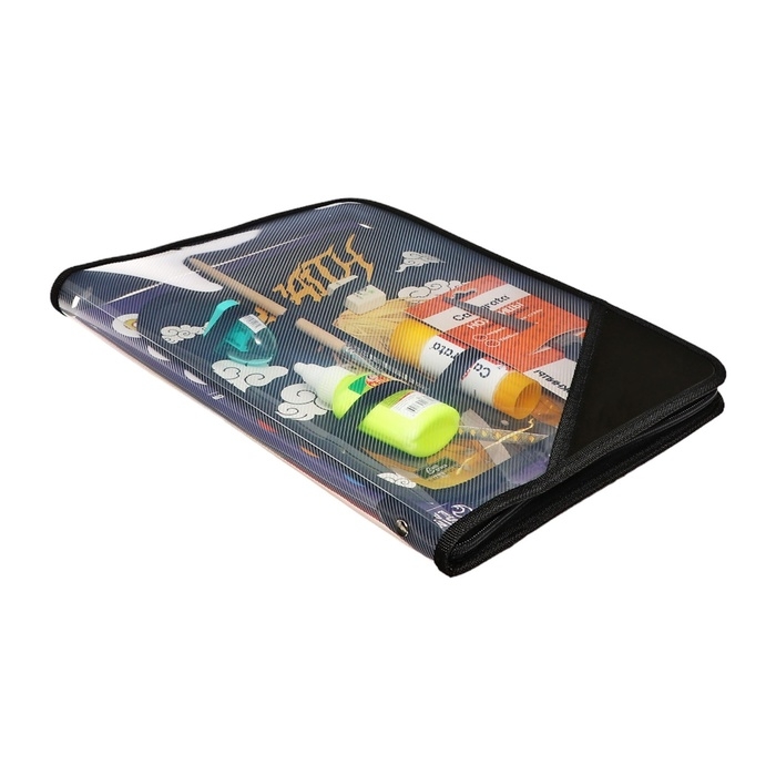 Папка для труда А4, молния вокруг, откидная планка, пластиковая, ПТР-1, с наполнением 10 предметов, для мальчика, Calligrata "Аниме клинок"