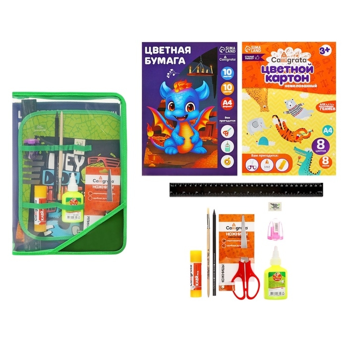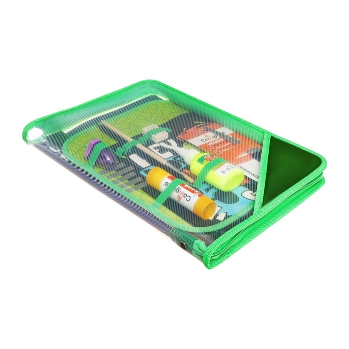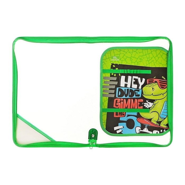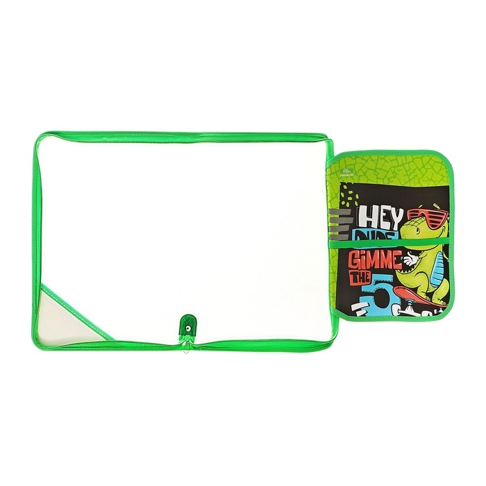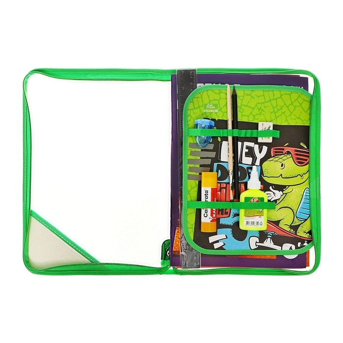 Папка для труда А4, молния вокруг, откидная планка, пластиковая, ПТР-1, с наполнением 10 предметов, для мальчика, Calligrata "Дино скейт"
