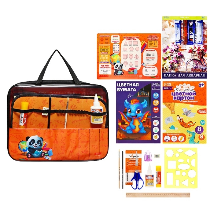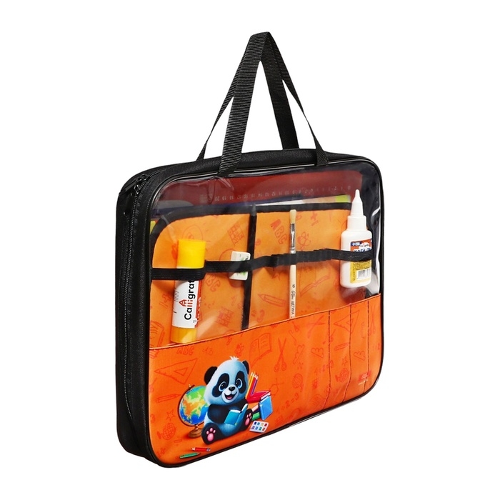 Папка для труда А4, 335 х 260 х 60 мм, с ручками текстиль, ПВХ, 13 предметов "Панда"