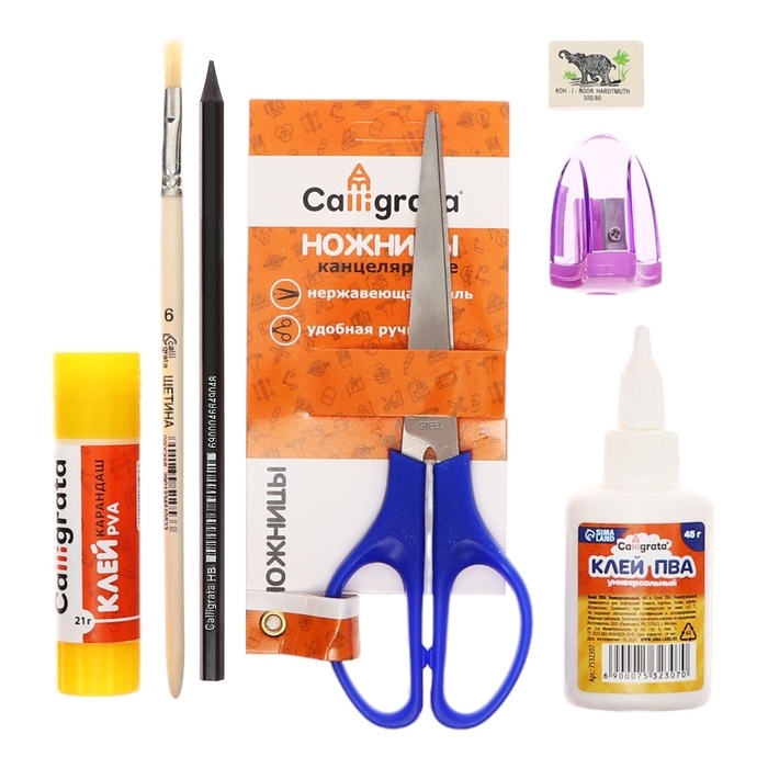 Карандаши, Клей, Линейка, Ножницы