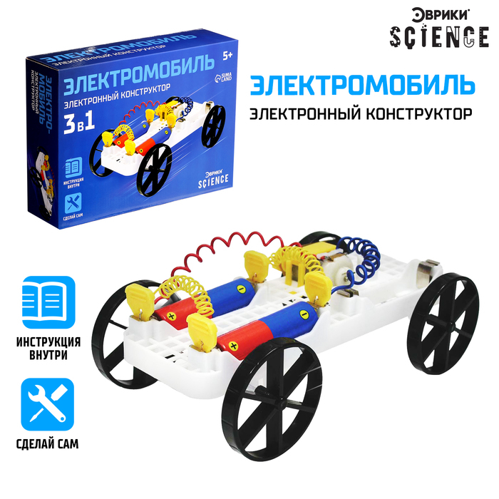 Электронный конструктор 3 в 1 «Электромобиль», набор для опытов