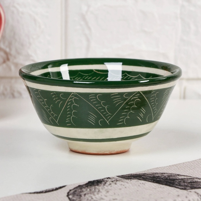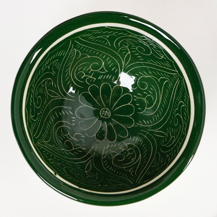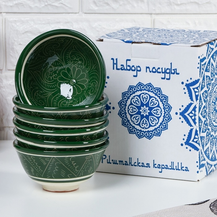 Набор больших пиал Риштан "Узоры" 6 шт в подарочной упаковке, зелёные,11 см