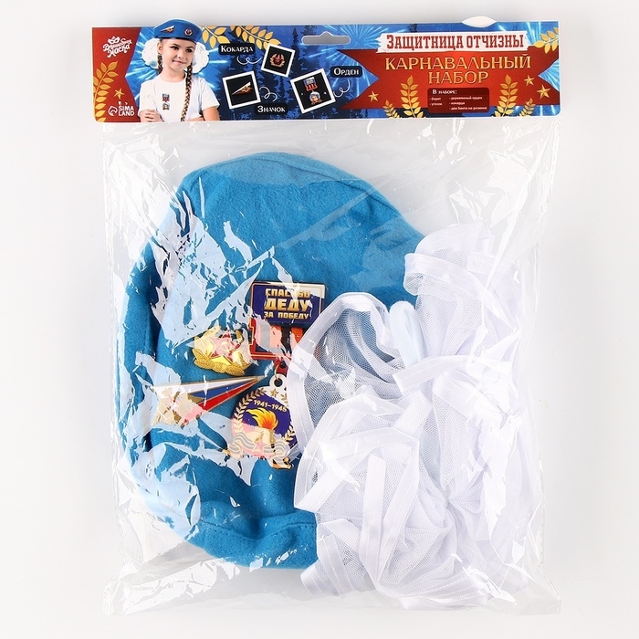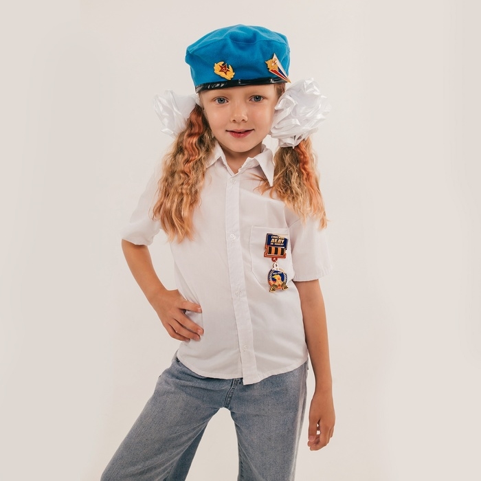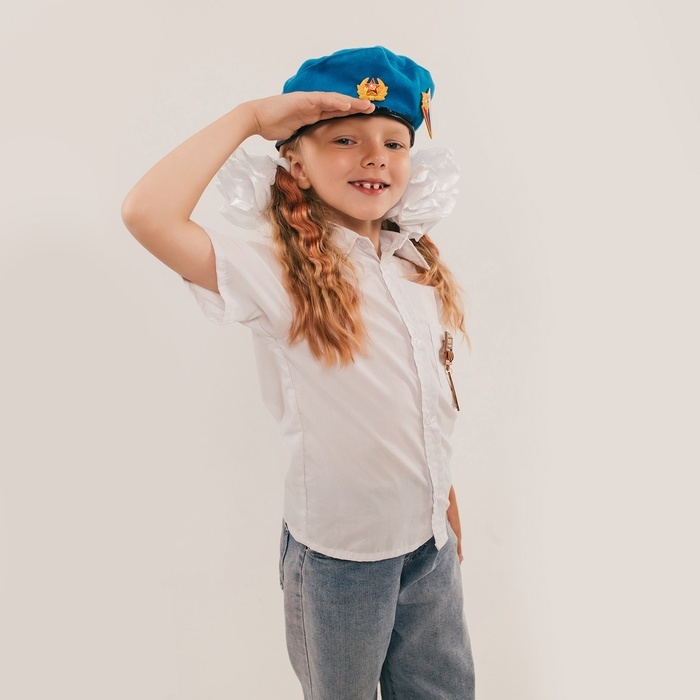 Карнавальный набор «Защитница отчизны» голубой берет, размер 54-56, банты 2 шт