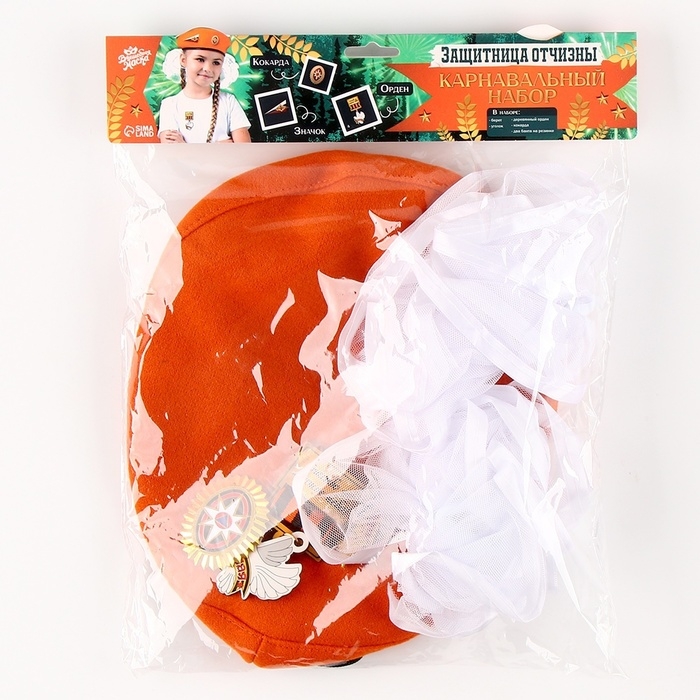 Карнавальный набор «Защитница отчизны» оранжевый берет, размер 54-56, банты 2 шт