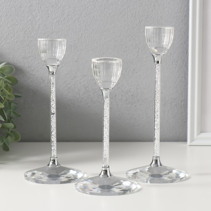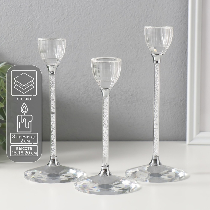 Подсвечник стекло на 1 свечу d=2 см "Альфир" набор 3 шт 6,5х6,5х20 18 15 см