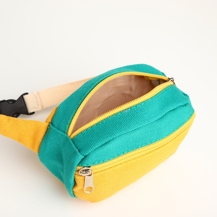 Сумка детская поясная на молнии, наружный карман, цвет жёлтый/зелёный