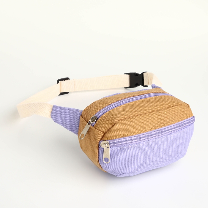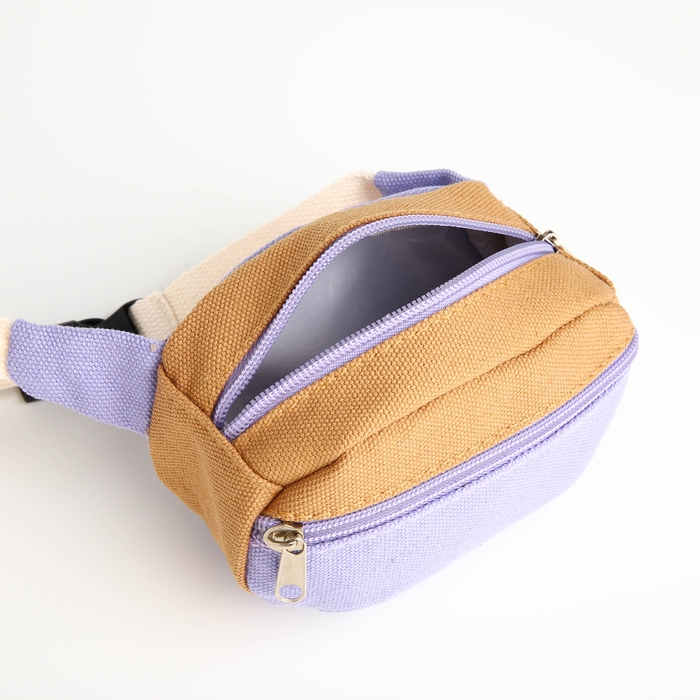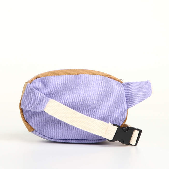 Сумка детская поясная на молнии, наружный карман, цвет сиреневый/бежевый