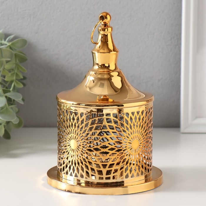 Подсвечник металл на 1 свечу "Цветение" золото d=3,5 см 12,5х12,5х19 см