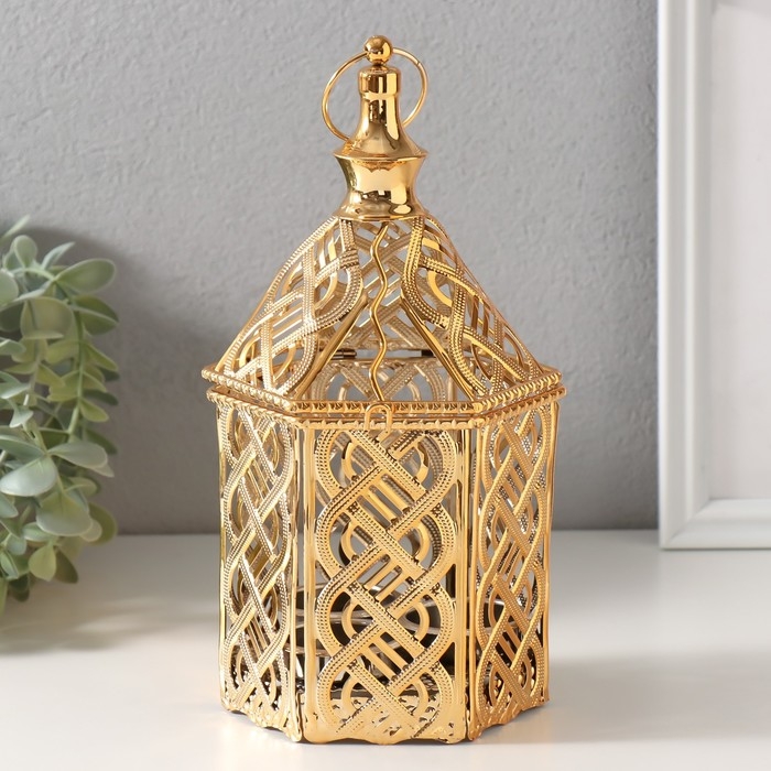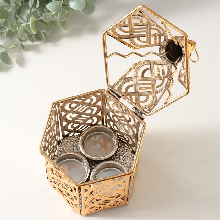 Подсвечник металл на 3 свечи "Переплетение" золото d=3,5 см 12х12х23 см