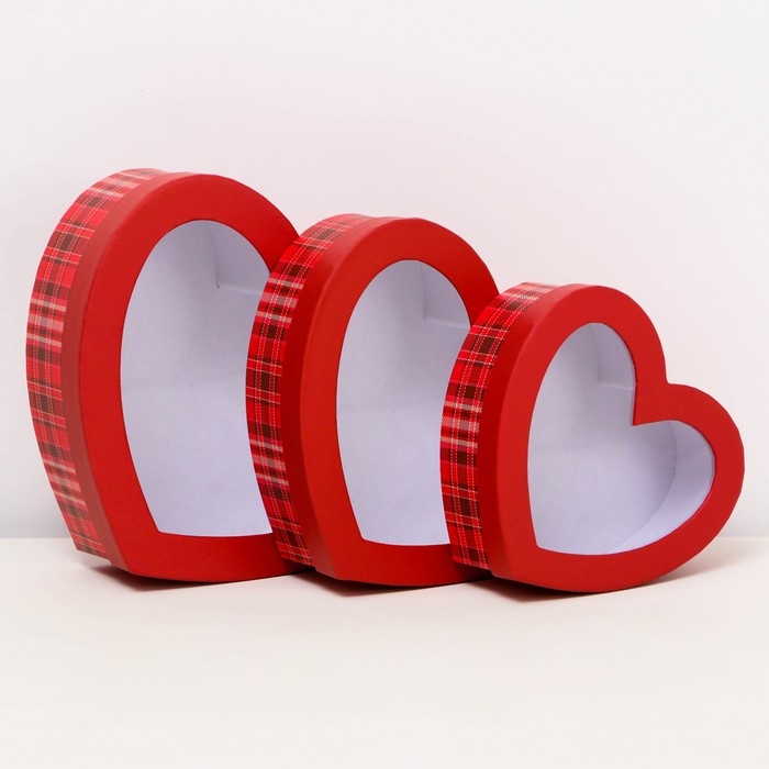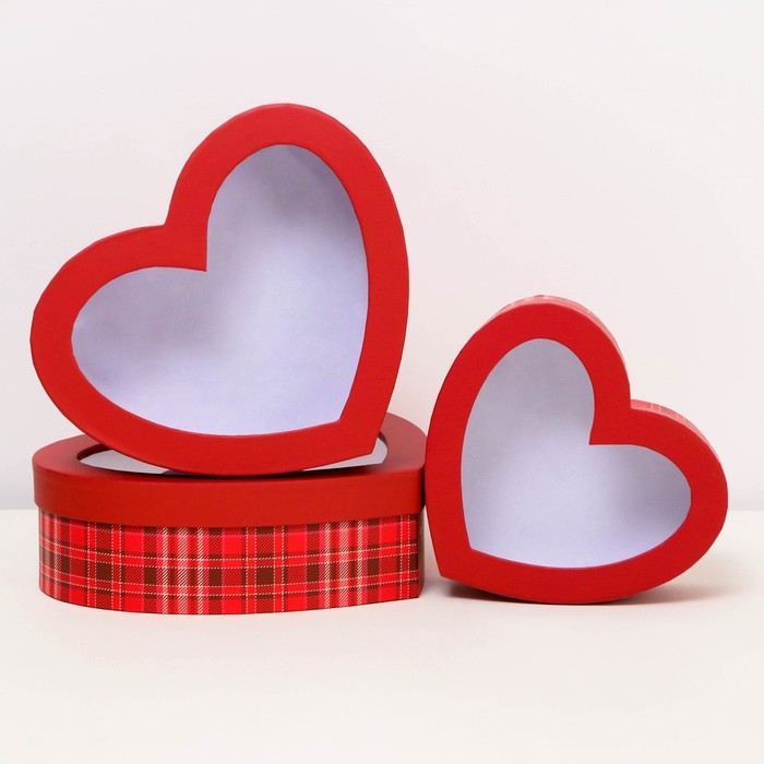 Набор коробок с окном 3 в 1 сердца L:22x18.5x6.5 M:19.5x16.5x5.8 S:15.5x14x5 см