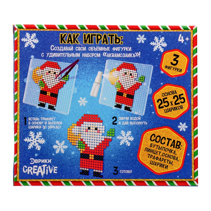 Аквамозаика от торговой марки «Эврики» скрасит дни в ожидании Нового года и поможет весело и с пользой провести время. Ребёнок соберёт объёмные фигурки из шариков-пикселей, потренирует мелкую моторику и внимание.