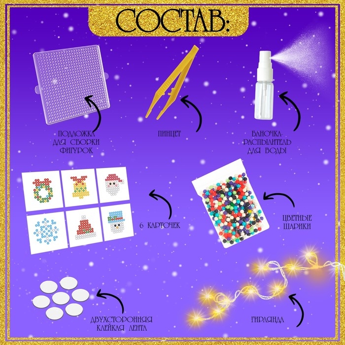 Аквамозаика «Новогодняя гирлянда», 10 фигурок, 500 шариков