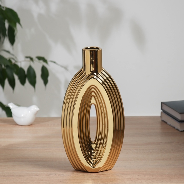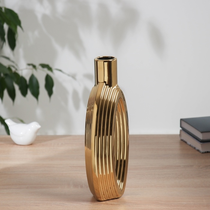 Ваза керамика настольная "Брэм" бутыль, 28х14 см, золото