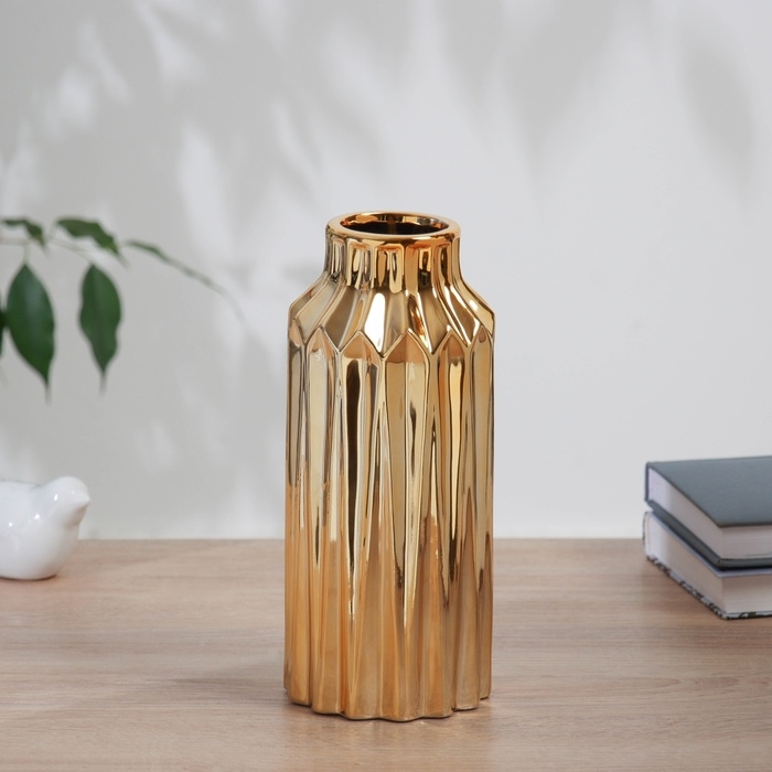 Ваза керамика настольная "Дарио" прямая, d-6см, 22х9 см, золото