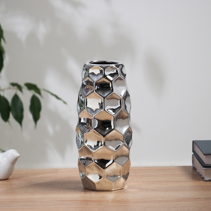 Ваза керамика настольная "Дарио" соты, d-5см, 21х7 см, серебро