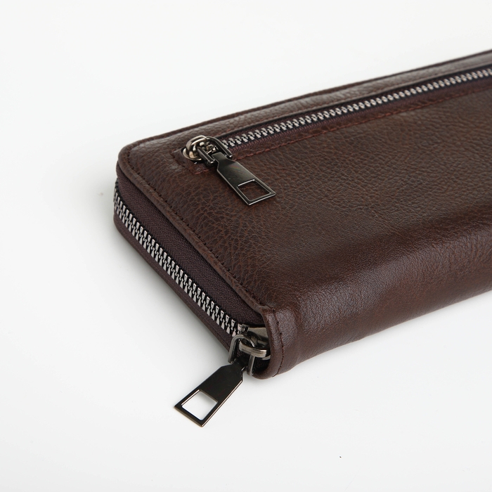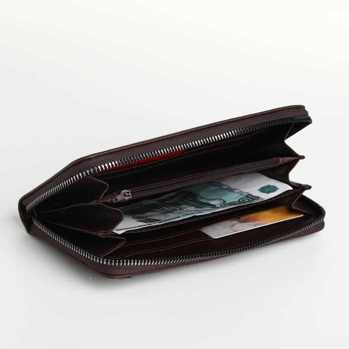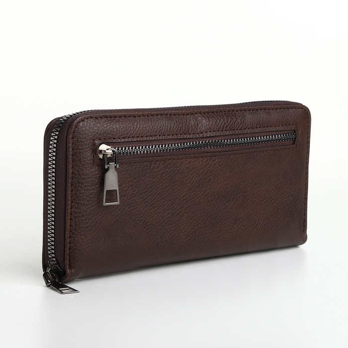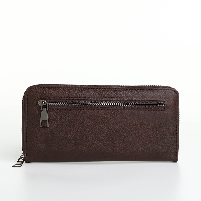 Портмоне мужское на молнии, отдел для карт, монет, цвет коричневый