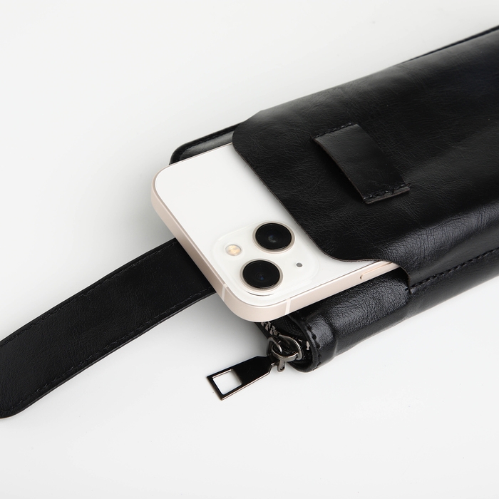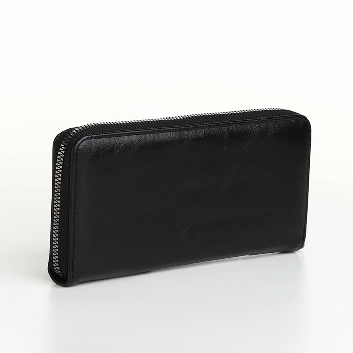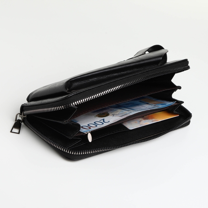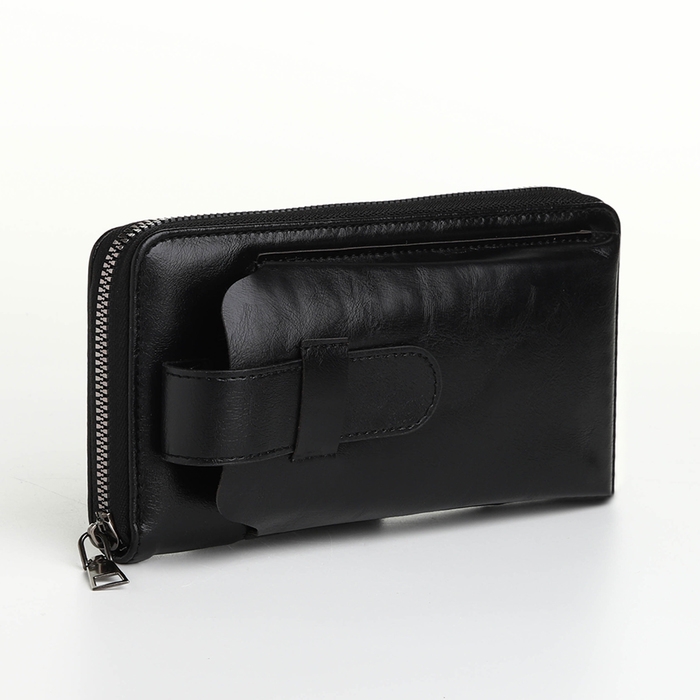 Портмоне мужское на молнии, отдел для телефона, карт, монет, цвет чёрный