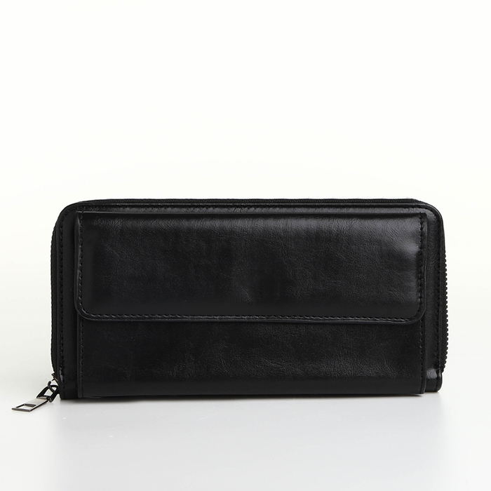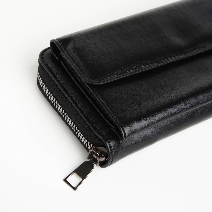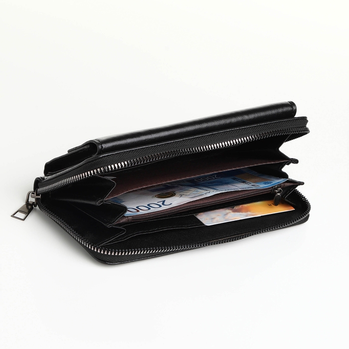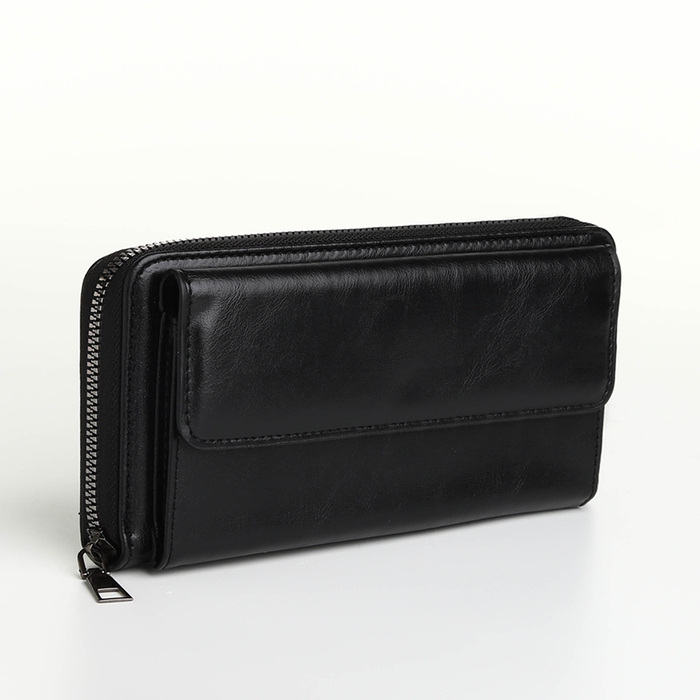Портмоне мужское на молнии, отдел для карт, монет, цвет чёрный