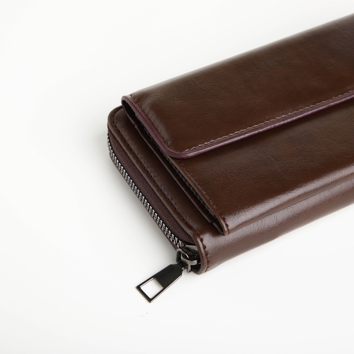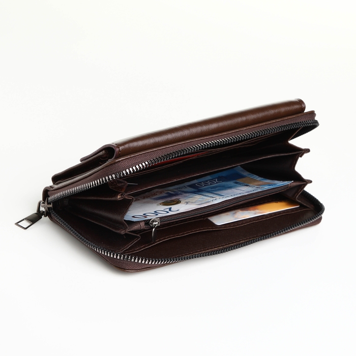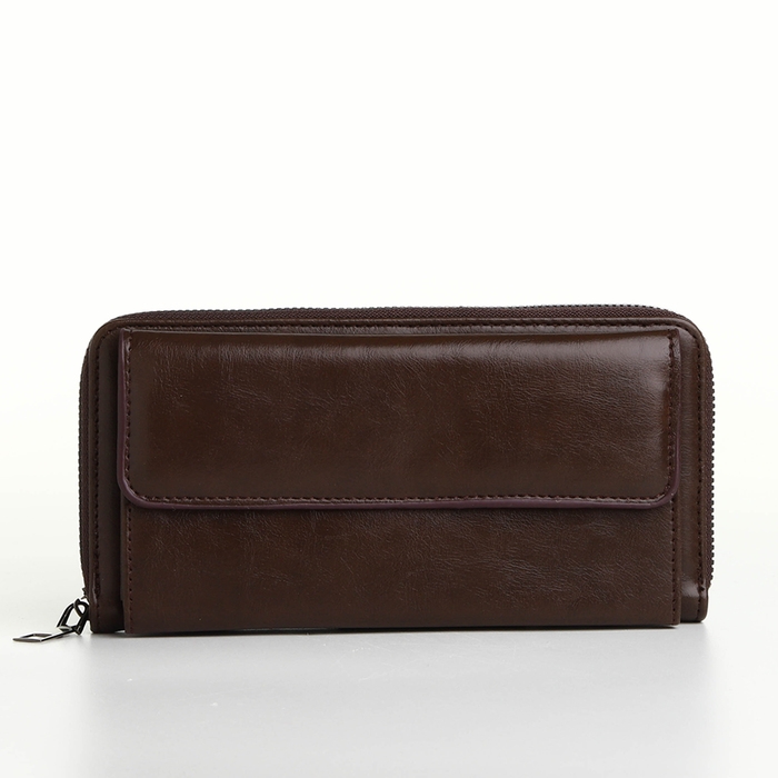 Портмоне мужское на молнии, отдел для карт, монет, цвет коричневый