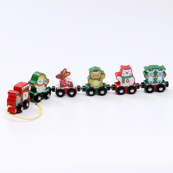 Новогодний декор «Волшебный паровозик», 36 × 5,4 × 1,6 см, сцепление магнитами, деревянный