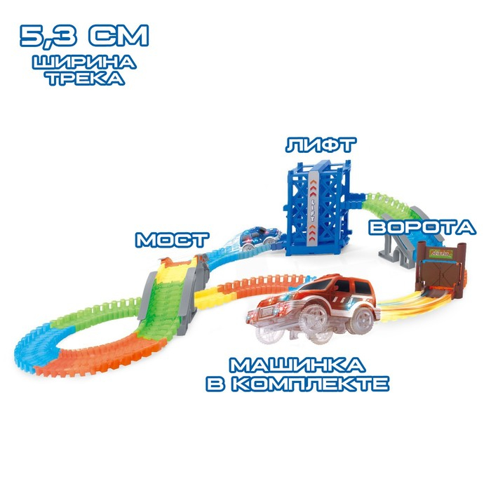Автотрек «Магический Трек», гибкий, светится в темноте, 126 деталей, лифт