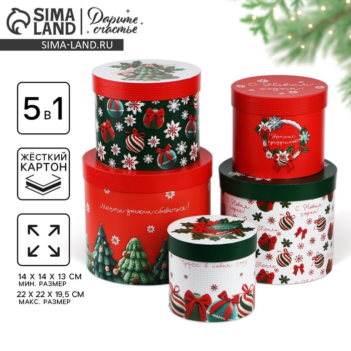 Набор подарочных коробок 5 в 1 «Вязаный», 13 х 14– 19.5 х 22 см, Новый год