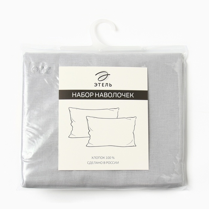 Комплект наволочек "Этель" 50х70-2 шт, цв.серый поплин, 100% хл