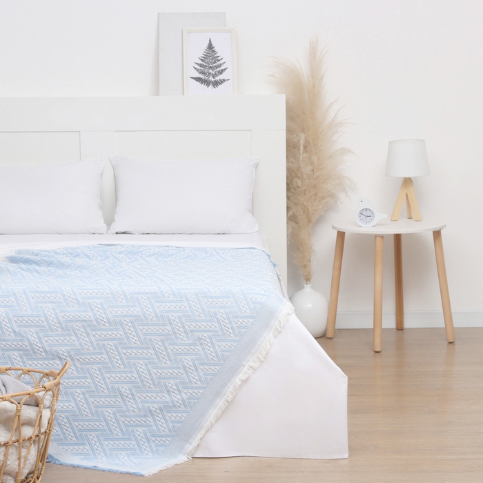 Плед Этель Home 130*180см , цв.голубой,80%хлопок, 20% п/э