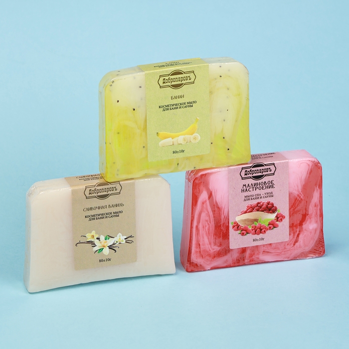 Набор мыла в спайке 3 шт "Сливочная ваниль, Малина, Банан" по 80г