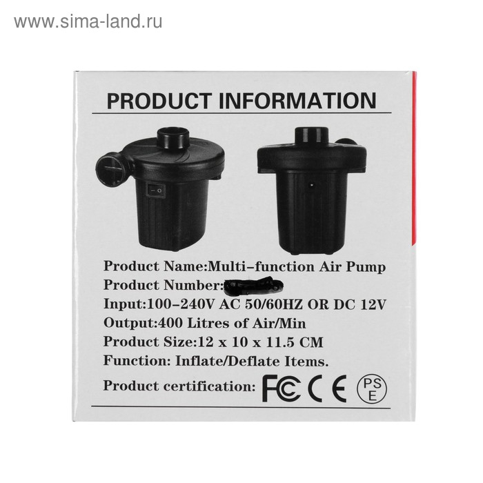Насос электрический 12 В, 75 Вт, от прикуривателя, 3 насадки